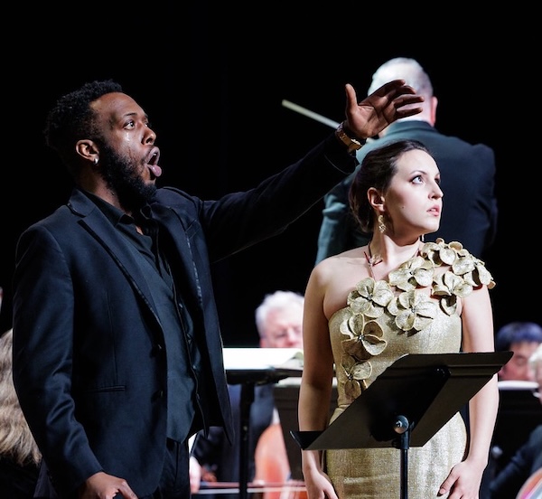 As the other title character, Will Liverman made a potent Zurga, his pointed baritone capable of both merciful pliancy and biting rage. Heard last fall in Washington National Opera’s Marriage of Figaro, his resonant voice carried convincingly in Lisner’s acoustic. He deployed a honeyed legato in his big scene in the third act, and he reached thundering volume in his angry confrontation with Léïla in Act III. The beloved Act I friendship duet with Nadir, “Au fond du temple saint,” has rarely sounded this polished, balanced, and sincere.