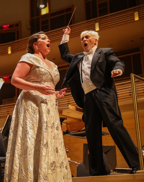 Soprano Catherine Wethington with Dante Anzolini conducting members of the Baltimore Symphony Orchestra in a tribute to Mother Teresa Saturday night at the Music Center at Strathmore. Photo: Jim Saah