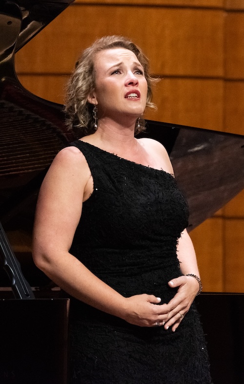 The first group featured classical composers who borrowed from vernacular styles. Aaron Copland’s setting of “Shall We Gather at the River” and Samuel Barber’s “Sure on This Shining Night” received luminous performances from Cooke and Huang. The pianist ably tackled John Musto’s jazzy accompaniment to Edna St. Vincent Millay’s “Recuerdo,” with Cooke supplying both humor and pathos, and the duo helped Charles Ives conjure the power of booming brass and drums for his own “Circus Band” text.